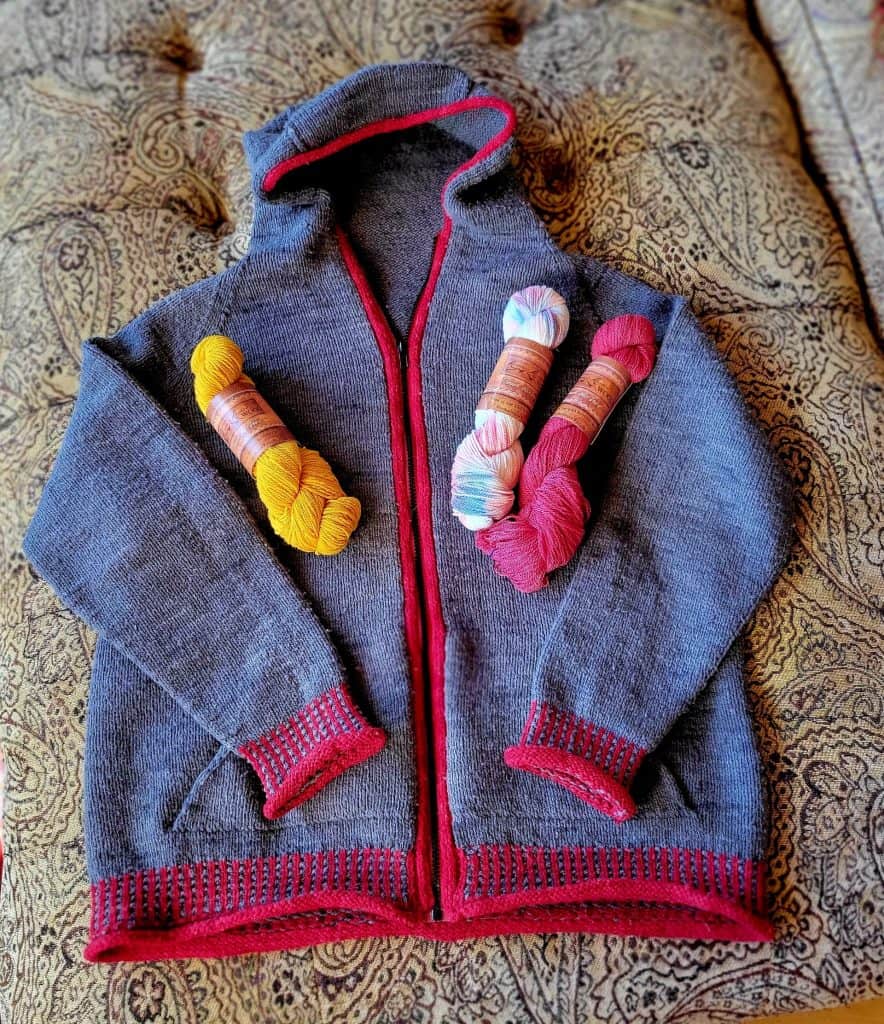 The welding colour inspiration was a gift from my son, who then collaborated with me to turn it into a yarn colourway. I enjoyed sharing that creative process with him so much! Love this boy to the moon and back!
