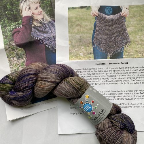 Indie Untangled May 2019 – Enchanted Forest shawl kit. Includes one skein Martin’s Lab yarn and The Sweetest Berries shawl pattern by Justyna Lorkowska. Only sold as a set.