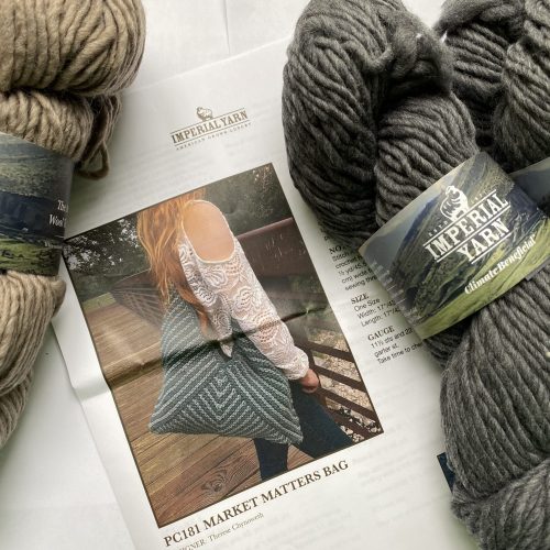3 skeins Imperial Yarn with color Imperial Yarn pattern for Market Matters Bag.