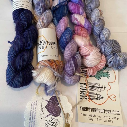 5 mini skein set of “all the purples” yarn from various makers. Selling as full set of 5.