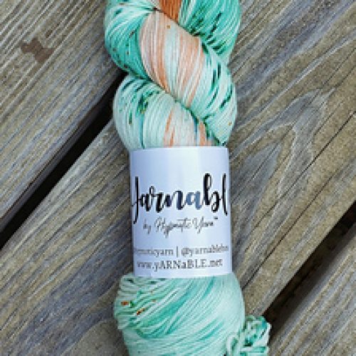 One skein Hypnotic Yarn Plush Sock in Yarnable colorway "Pumpkin Patch".