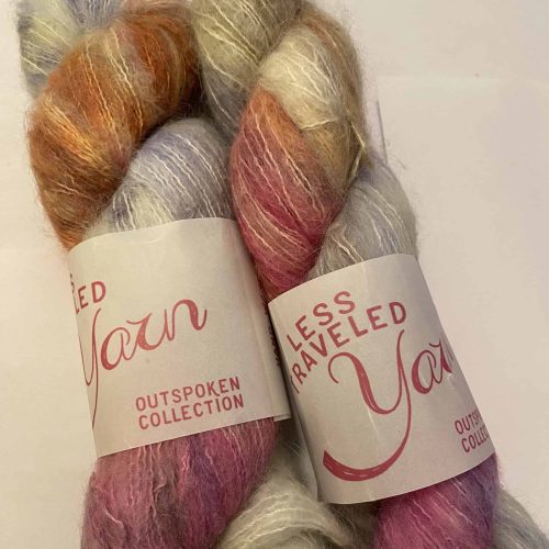 Colorway: Harlequin Robot. Two skeins. 328 yards. 74 Baby Suri Alpaca/26 Silk. $10 each, $20 total includes shipping to US addresses, $10 each, $20 total and you pay shipping outside of US. Stored in open shelving in dog friendly, smoke free home. Dog goes not have access to yarn stash.