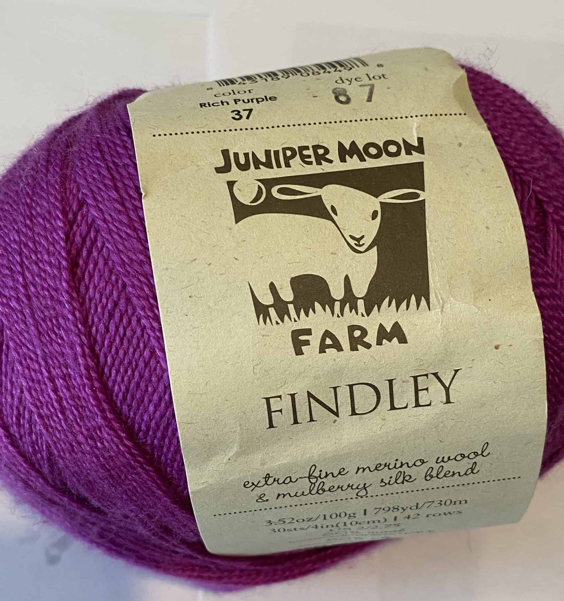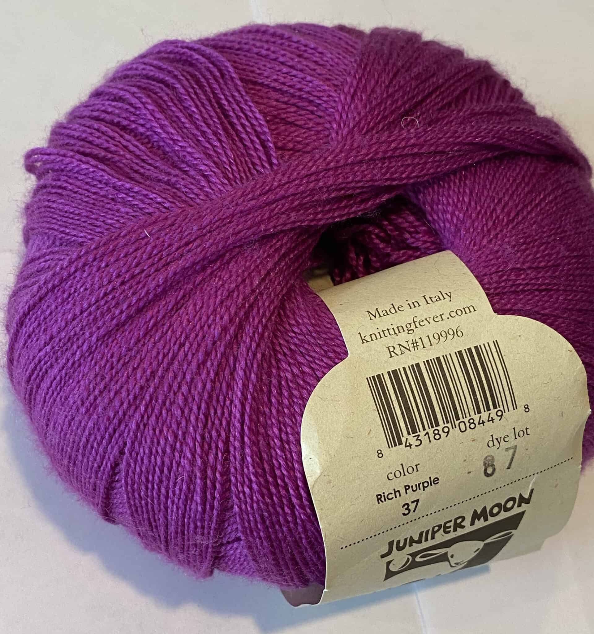 Juniper Moon Farms Findley Yarn. One skein. Color: Rich Purple. Dye lot 87.