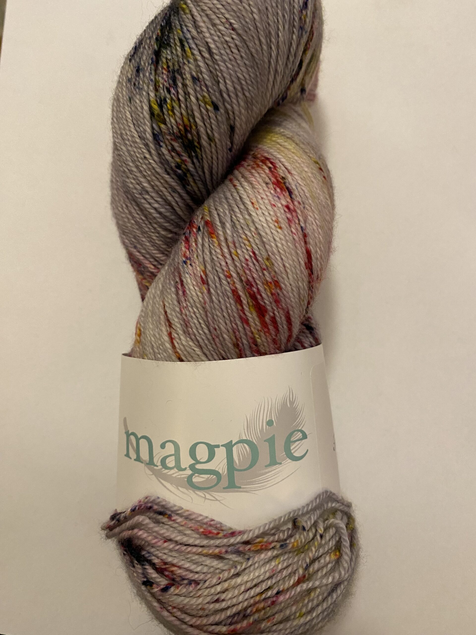 One skein Magpie Fibers Swanky Sock yarn. 80/10/10 SW Merino/Cashmere/Nylon. 400 yards, 115 g. Fiber Society No 12. When Doves Cry.