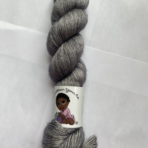One full skein Lola Bean Yarn Co. yarn. Silk Bean base. Color: Steel. 70/30 SW Merino/Silk. Fingering. 438 yards, 100g.