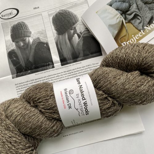 One skein Bare Naked Wools by Knitspot yarn in Friesian DK and Knitspot knitting pattern for Hillock Hat.