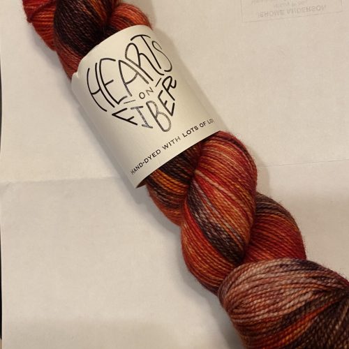 One skein Hearts on Fiber Sock yarn. Color: Addiction. 80/20 Merino/Nylon. 400 yards, 100g