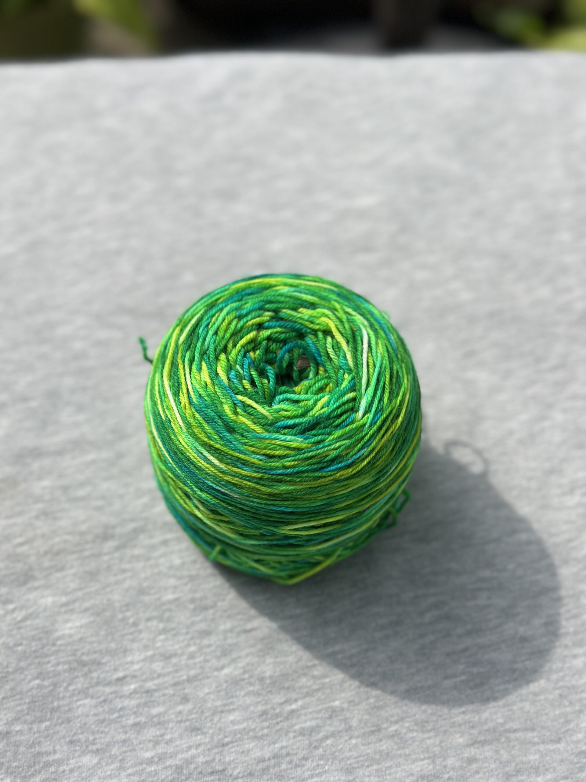 One skein of Teenybutton Studio Soft Sock in colorway "Cup of Ambition".