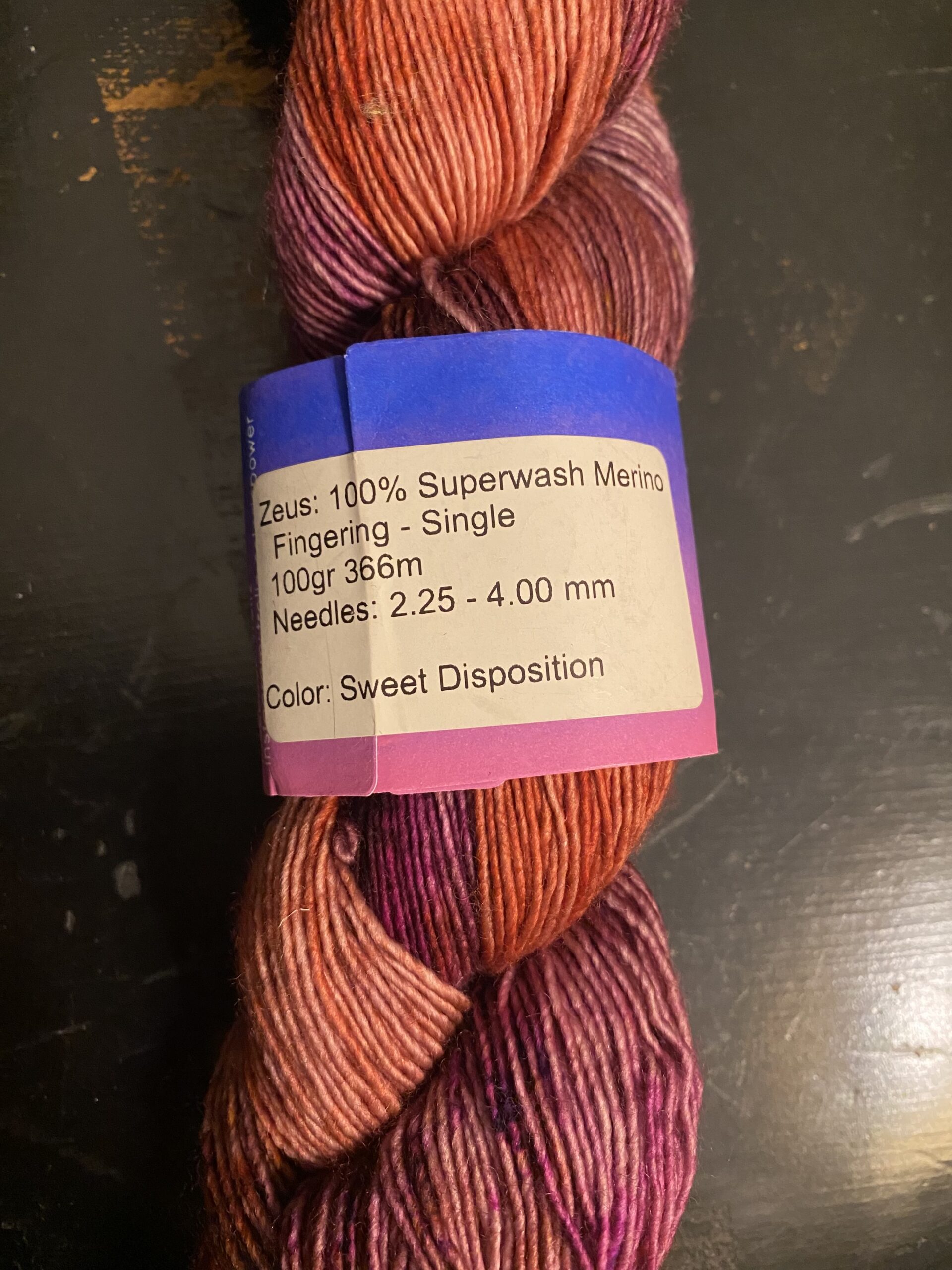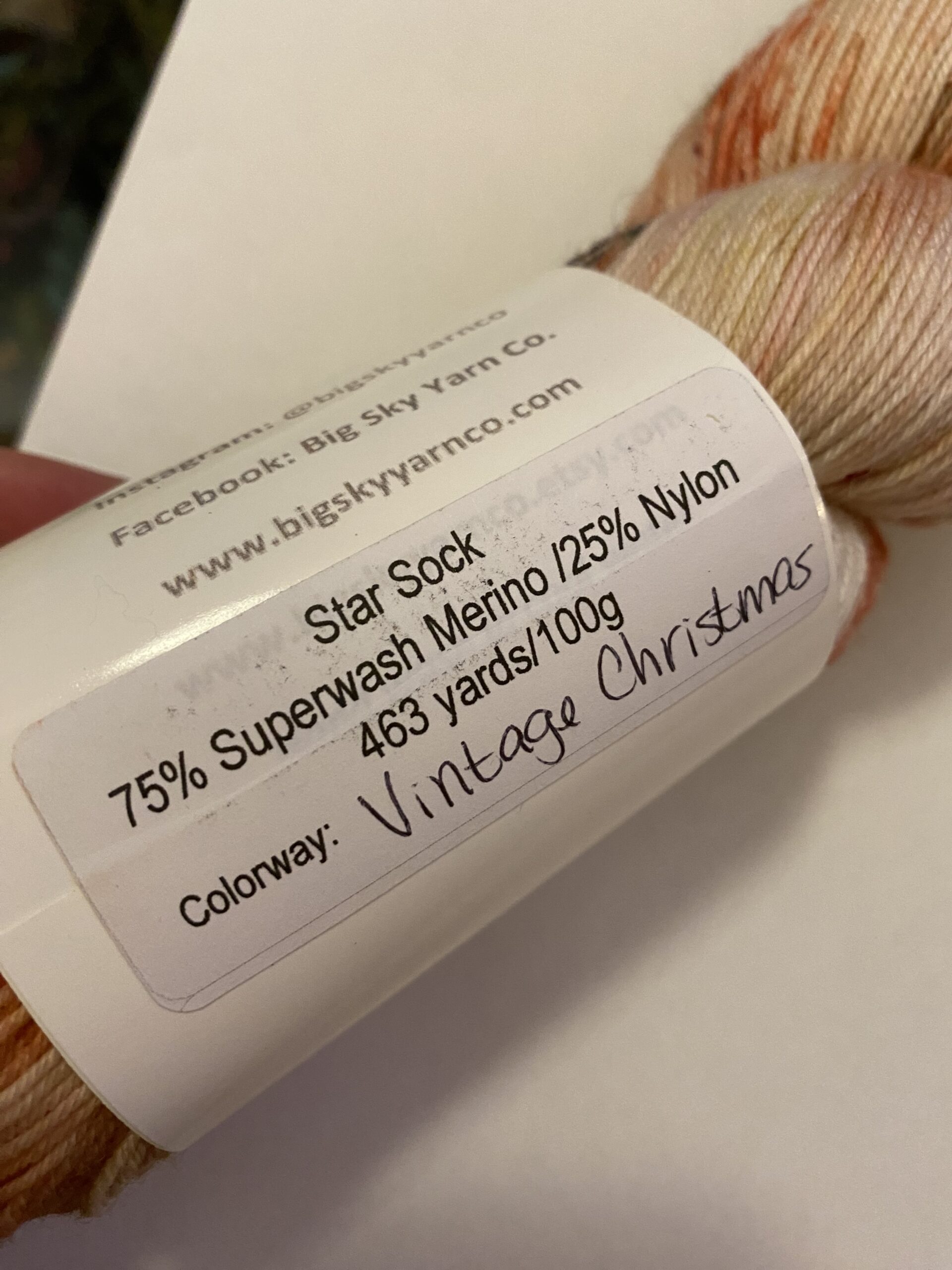 One skein Cornbread and Honey Fingerling weight yarn. Color: Because of My Fiber Addiction. 100% NON SW Merino. 436 yards, 100g