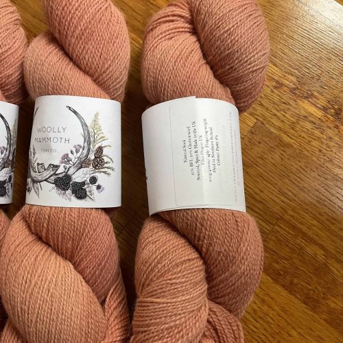 Mindy Kannon Woolly Mammoth Fibre Co Yarn May 23, 2023 Contact Seller Tags Yarn Fingering Woolly Mammoth Fibre Co Natural Sock 50% BFL/50% Cheviot Made in the UK/Dyed in Northern Ireland Colour: Putty #2 3 skeins Original Price – $32 a skein $60 for 3 skeins
