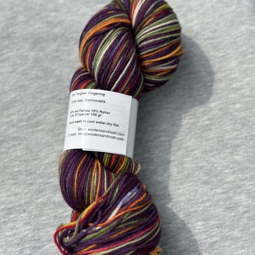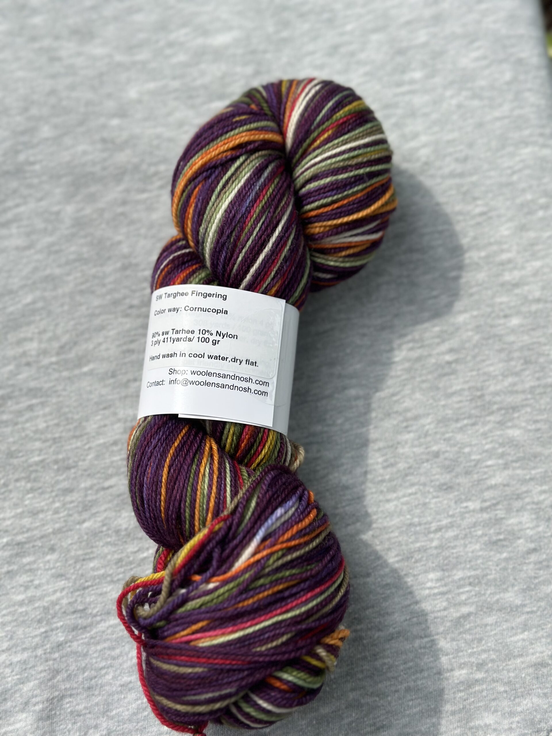Barb Monte Yarn September 23, 2023 SOLD OUT Tags Woolens and Nosh – self stripping Sw targhee fingering 90& sw target, 10% nylon 3 ply, 411 yards, 10 gr $22 plus $3 shipping is US Smoke-free, pet-free
