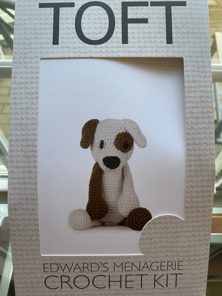 Toft UK crochet kit. Tucker the Jack Russell dog. Kit includes pattern and yarn needed to make the dog. Cream and Fudge colorway. Super cute!!