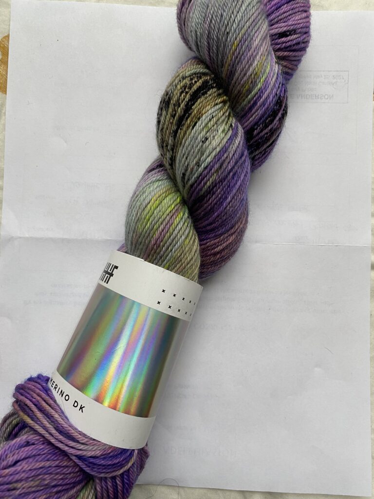 » Read more about: One skein variegated and speckled peach, pink and purple yarn »