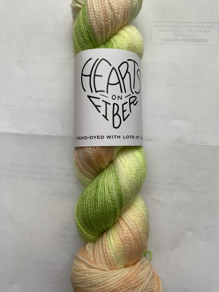 One skein Hearts on Fiber Sock yarn. Color: Dysmorphic. 80/20 Merino/Nylon. 400 yards, 100g