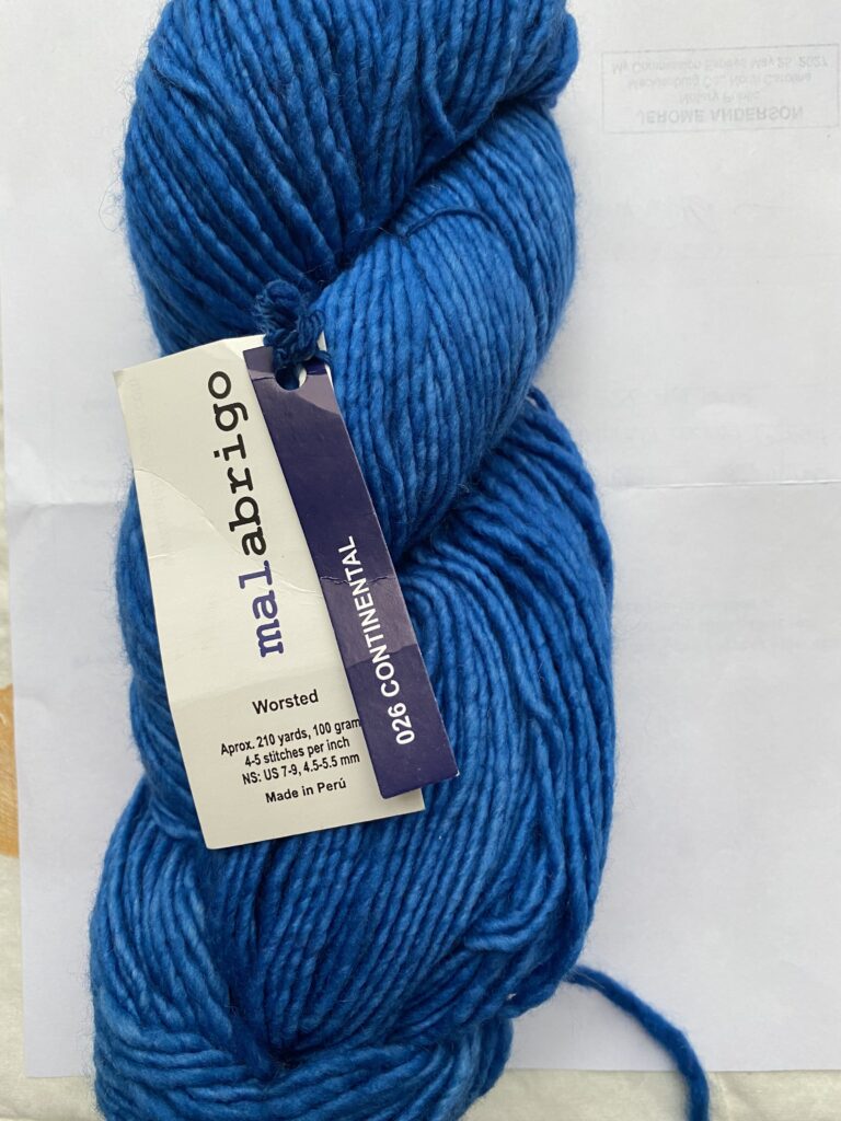One skein Malabrigo Worsted yarn. Color: 026 Continental. 210 yards, 100g. Made in Peru.