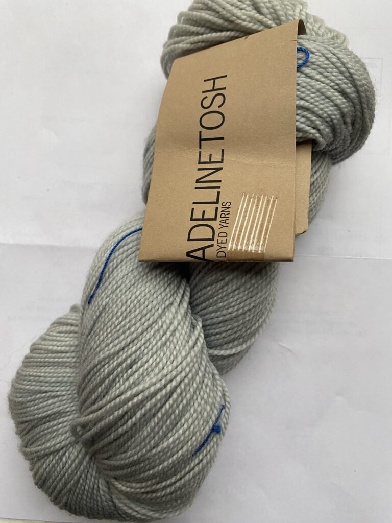 One skein Madelintosh Tosh Sock yarn. Color: Moonglow 311. 100% merino. Fingerling. 395 yards, 361m.
