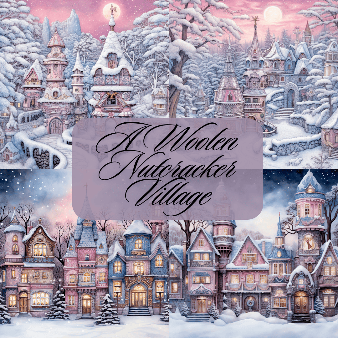 Artwork by FinchleyPaperArts on Etsy (Nutcracker) and SwampWitchHut on Etsy (Dickens Village).
