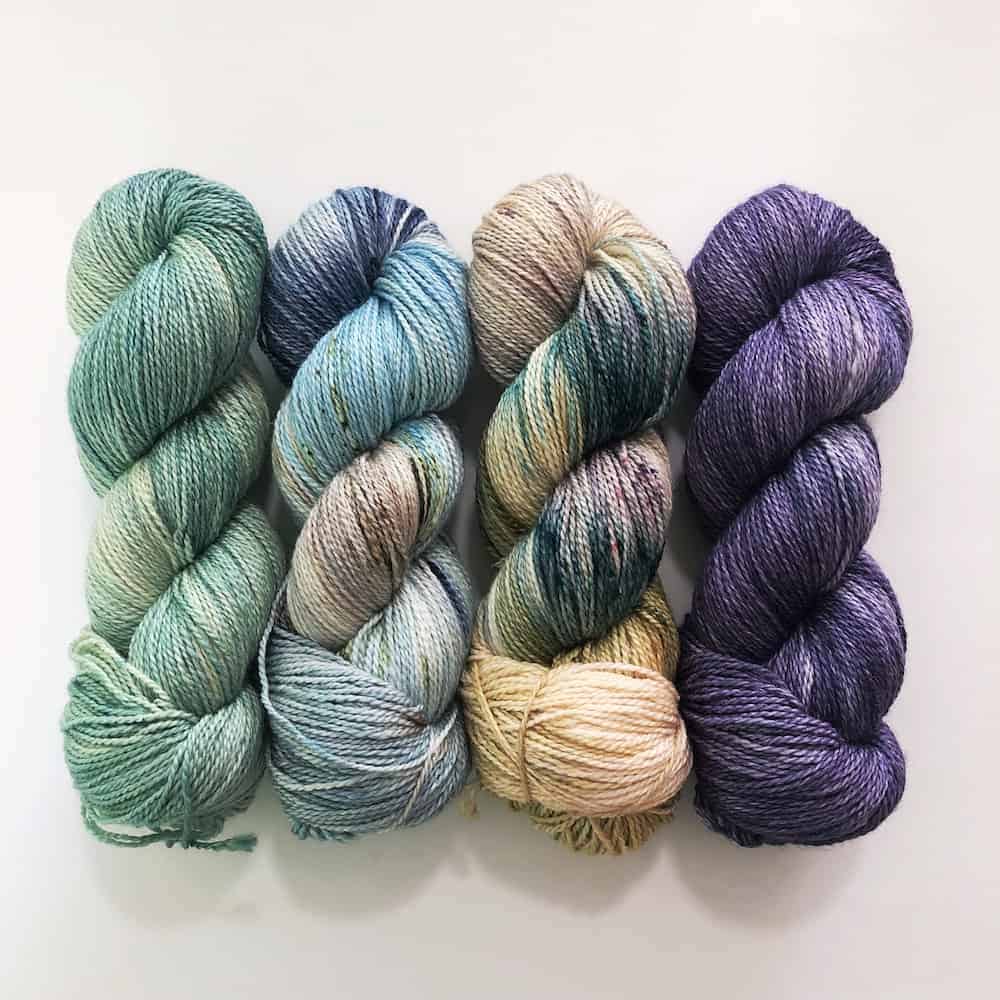 We love this time of year, and it’s showing in our latest colorways! The shop is stocked with gorgeous rainy and floral colors on some of your favorite bases, plus a couple of limited-edition bases: Freckles, a Superwash Merino fingering with black tweed nepps, and SuperSilky, a 50/50 silk/Superwash Merino heavy fingering with the prettiest drape and shine, perfect for transition and summer shawls, sweaters, tees and tanks. We also have a gorgeous new colorway inspired by actress Molly Ringwald and all her amazing 80s heroines, comprised of soft peachy pinks and deep auburn oranges. It’s not part of a planned collection, but sometimes we make up colorways based on our Netflix binges — just because we can!