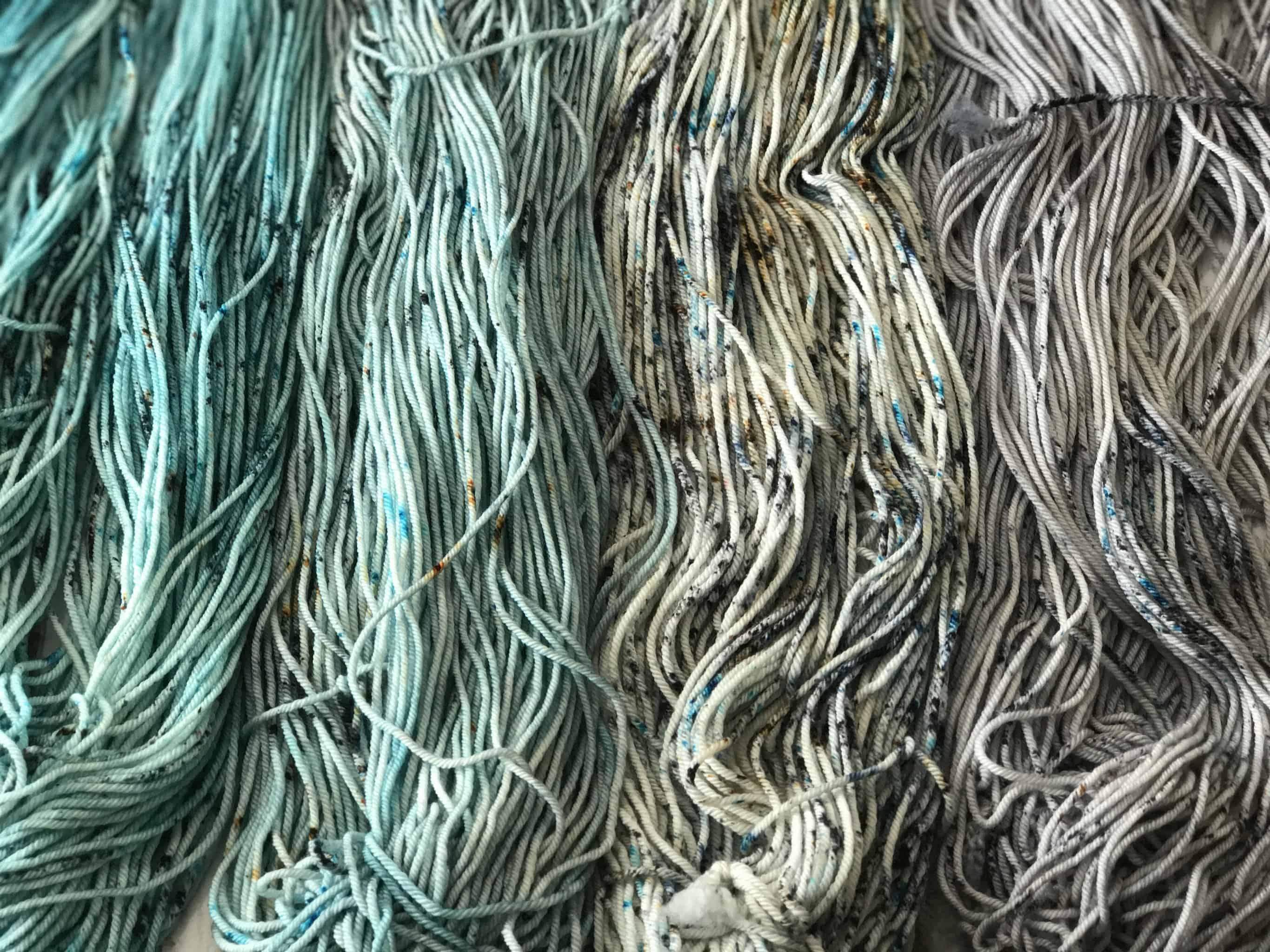 So bring on the fades Andrea! And so she has, with several pattern releases that have left me panting to keep up as a dyer. I love dyeing yarns that make my heart sing, and even more fulfilling is knitting with these yarns in patterns that make my heart sing! So in the shop you will find several kits in fadeable yarns, yarns that were dyed especially with fading in mind, designed to melt into one another seamlessly. And of course these fadeable kits were dreamed up to dovetail with Andrea’s latest patterns! I hope they make your heart sing also!