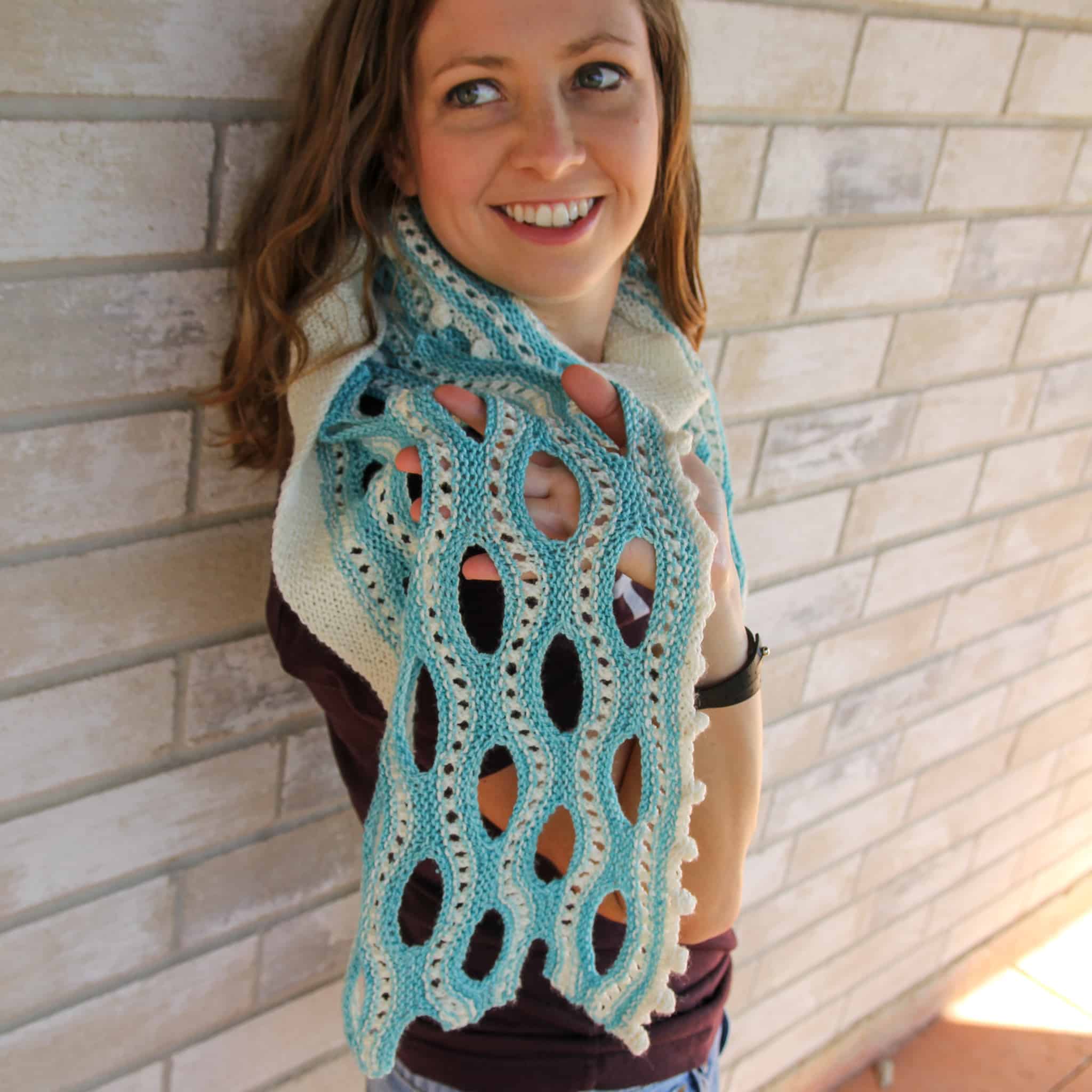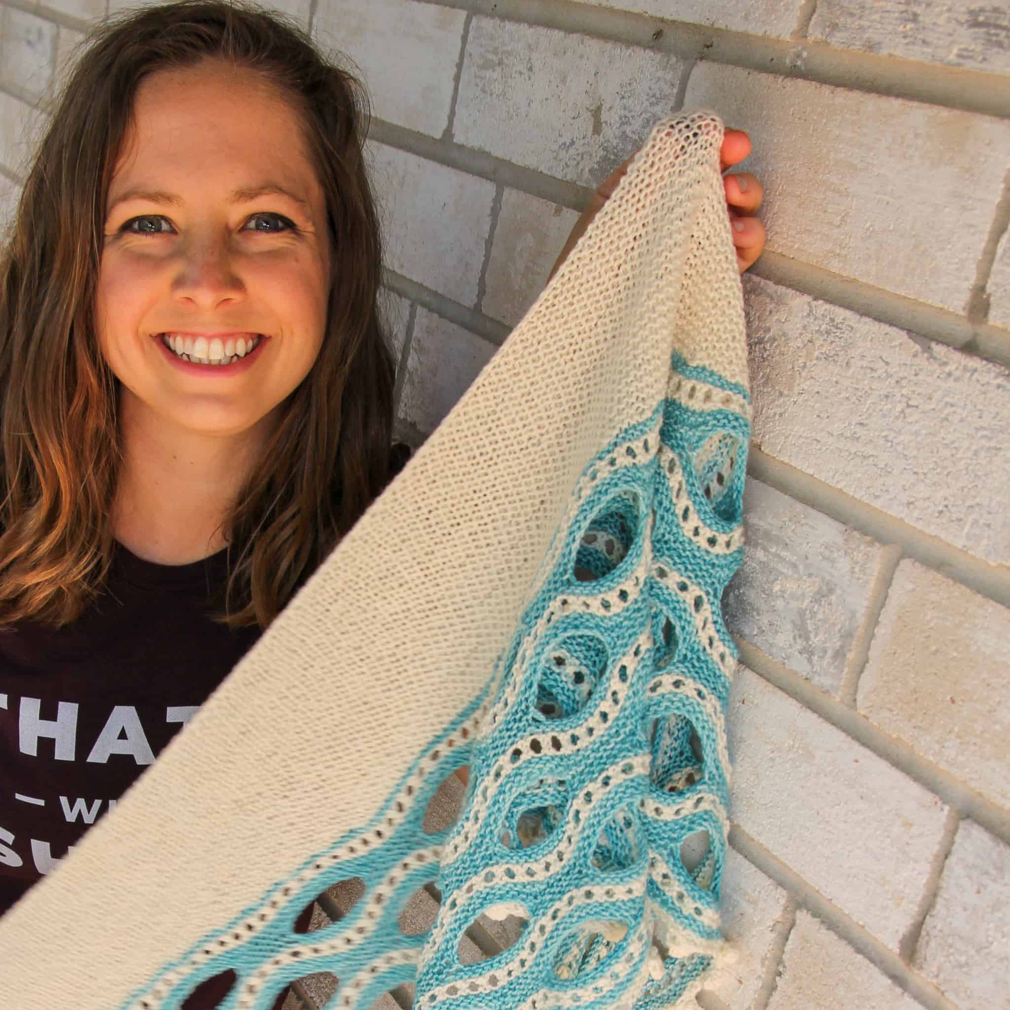 Meet Destin, my new summer shawl pattern. Funny story: I named this shawl Destin because I was 75% sure my family was going to take our first trip after Covid to sunny Destin, Florida, and I really wanted to take pictures on the beach with this shawl….