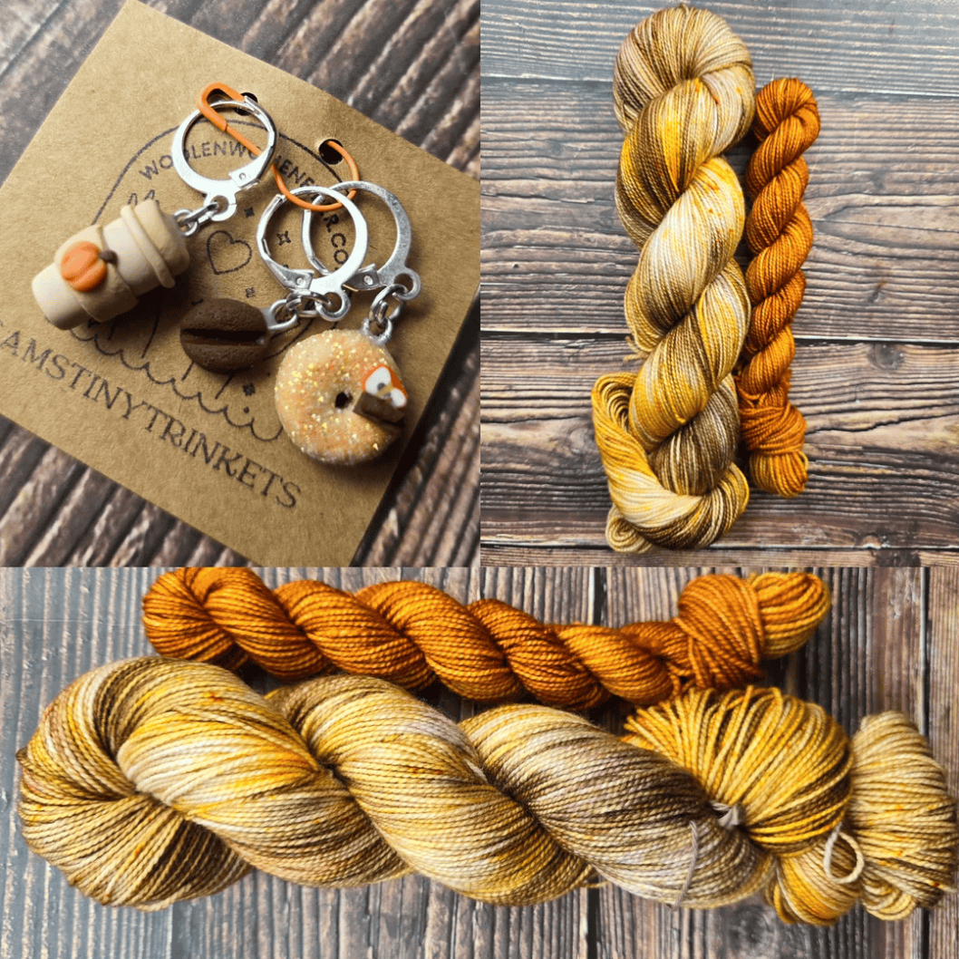 Want an exclusive one-of-a-kind set every month? Join our Patreon sticker club! This August we have our Welcome Autumn fall foraging sock set available to all patrons who are active or signed up to support this month until the 25th. Sami and I draw and design the stickers ourselves and make the yarn and charms to match exclusive for patrons. Charms are an add-on available at 20% off plus free shipping to patrons, and yarn goodies are included in your tier when you sign up for $10 and above.