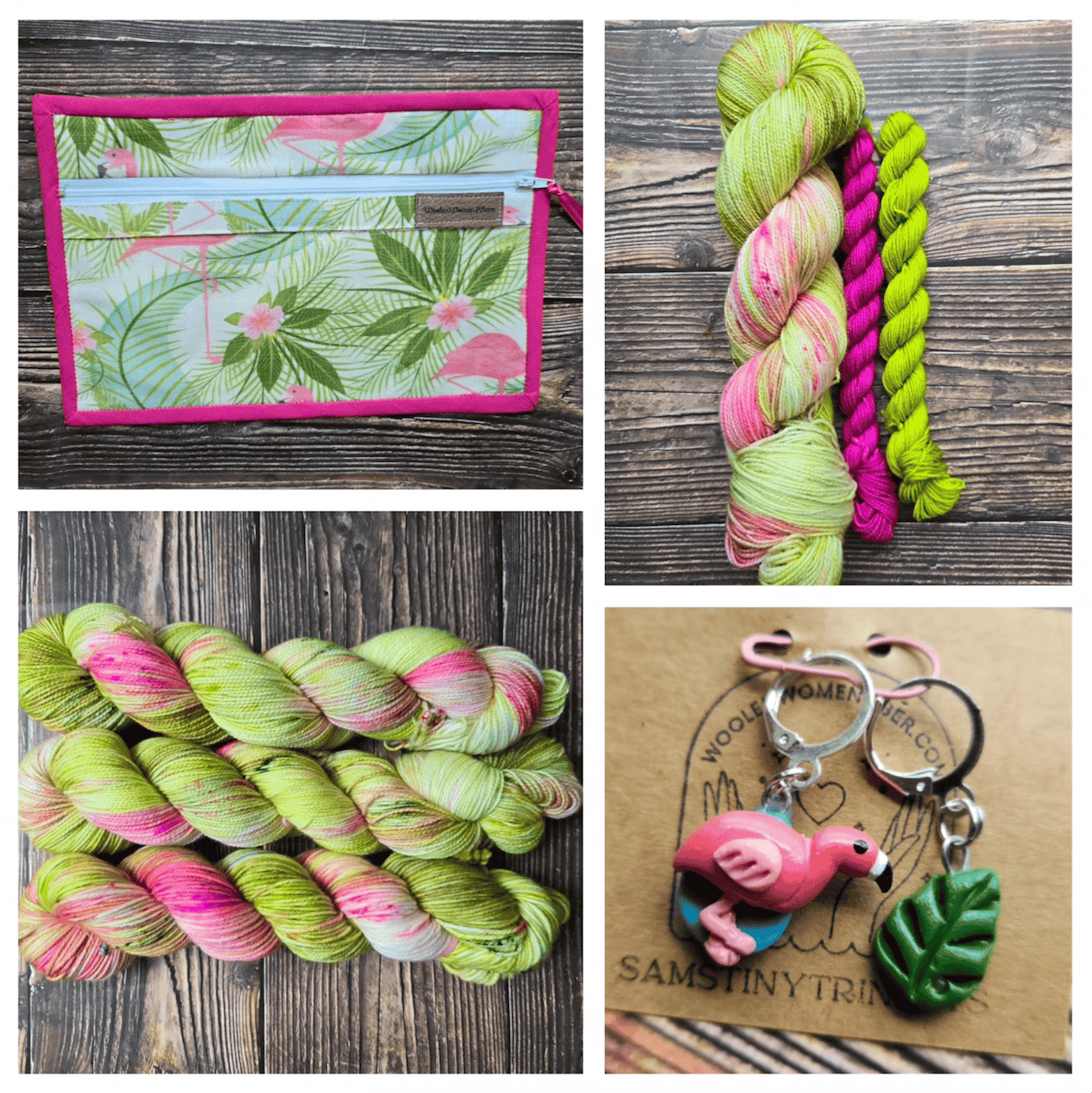 Join us as a WoolenYarnBox takes us to palm beaches and sunny sky Florida this July. These bright, hot flamingo pinks and palm greens are perfect for summer!