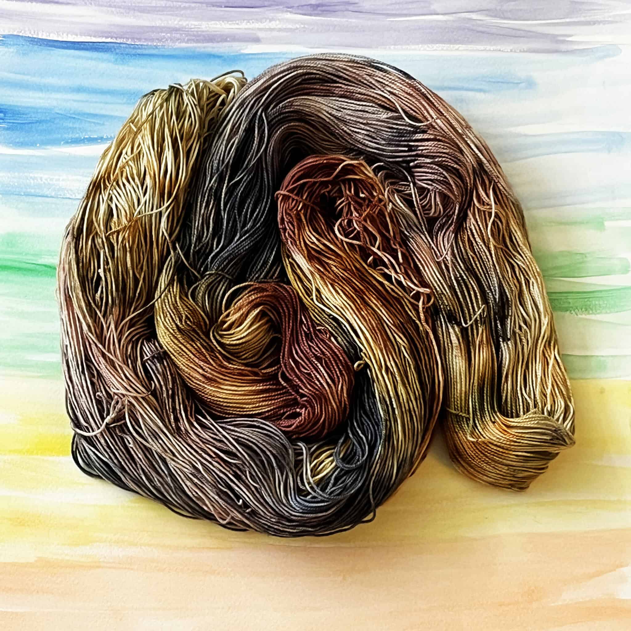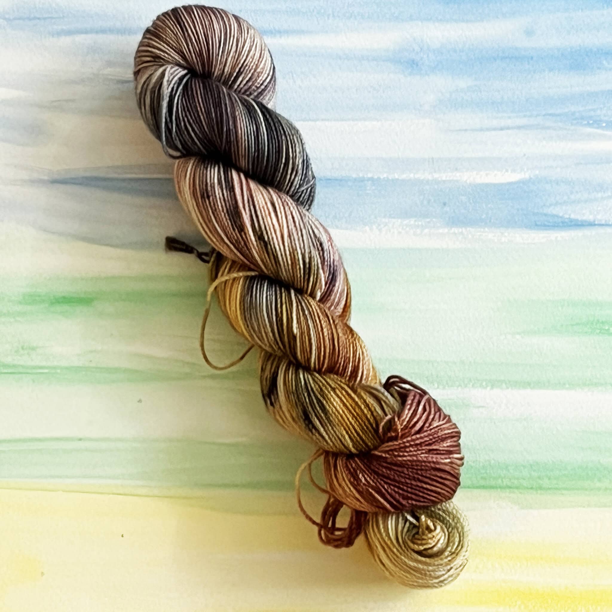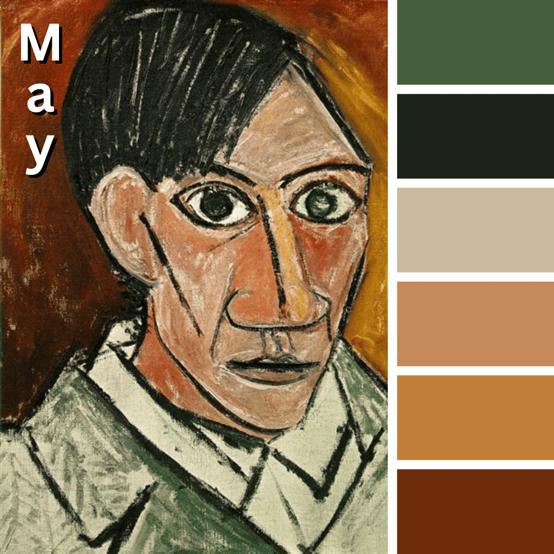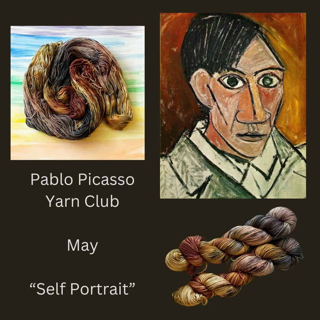May is here and we are celebrating the start of Pablo Picasso’s Cubism era with a self portrait created in 1906. This yarn (and art) features browns, tans, and golds — the perfect variegated neutral colorway.