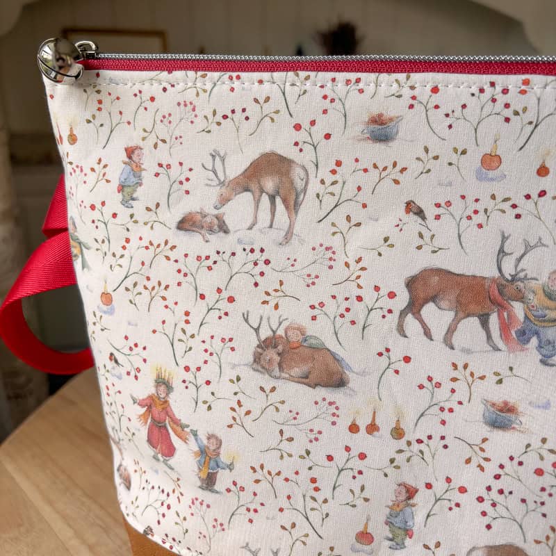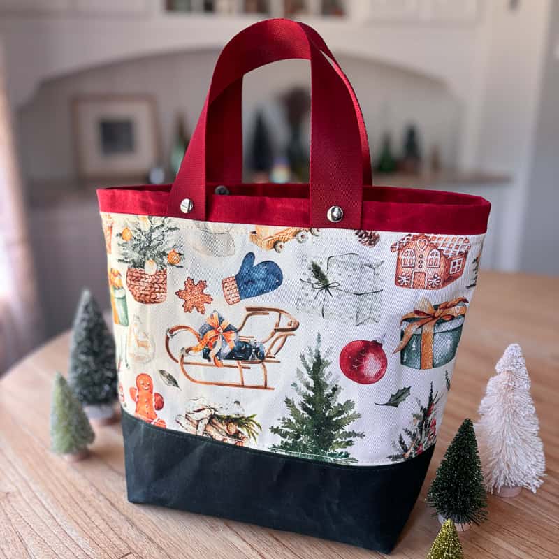My new collection of holiday bags features some really lovely prints and lots of festive touches like jingle-bell zippers that actually jingle! I have bags that are both Christmas-themed as well as ones that are more generally winter themed, in the traditional “Ho ho ho!” colors as well as more subtle palettes. I hope there’s something for everyone, and especially something for you! One would make the sweetest gift for your crafty bestie, or the sweetest celebration of the time you take out for yourself this season to breathe, relax, and create.