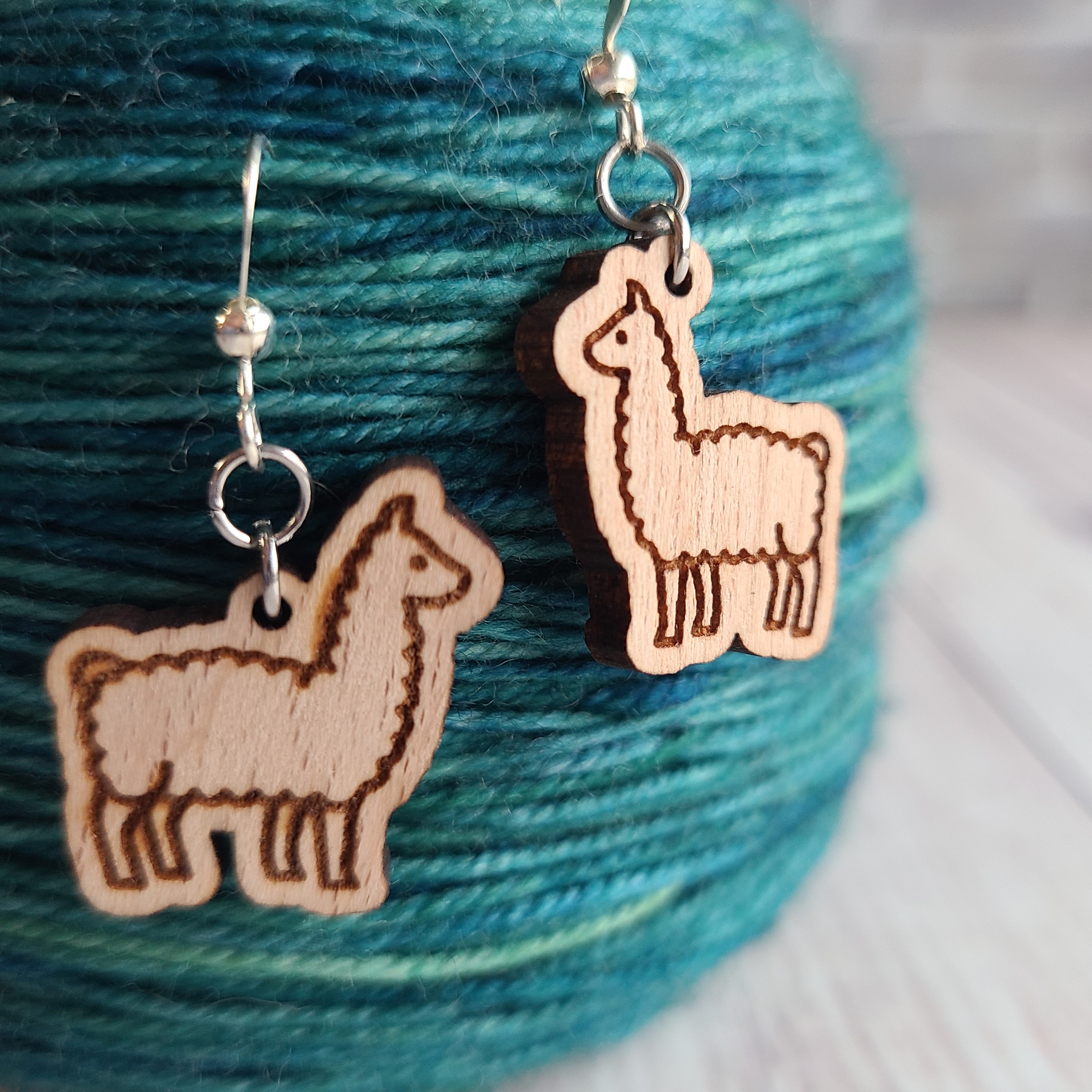 Each pair is laser cut in our studio from sustainably sourced beech or walnut hardwoods. Choose from yarn love, spinning wheel, stitch love knit and crochet, sheep, alpaca, or rabbit. The stitch love earrings could represent your enjoyment of sewing, quilting, embroidery, cross-stitch, needlepoint, sewing together your knit or crochet projects, or all of the above.