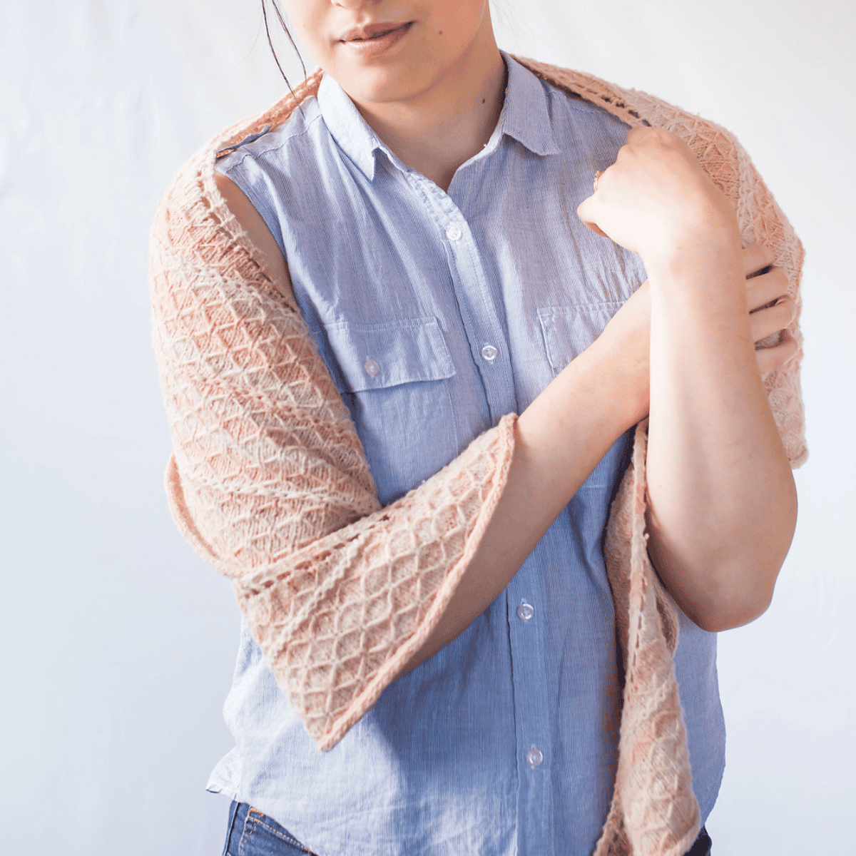 Feel the yarn run through your fingers as you work. Watch as the twisted stitches outline the lace to paint an intricate tapestry, even as you experience the simplicity in its knitting. Dive into the process, savor the healing power of working up the piece, and celebrate when it’s complete. Your family and friends will wonder at this intricate tapestry you’ve created.