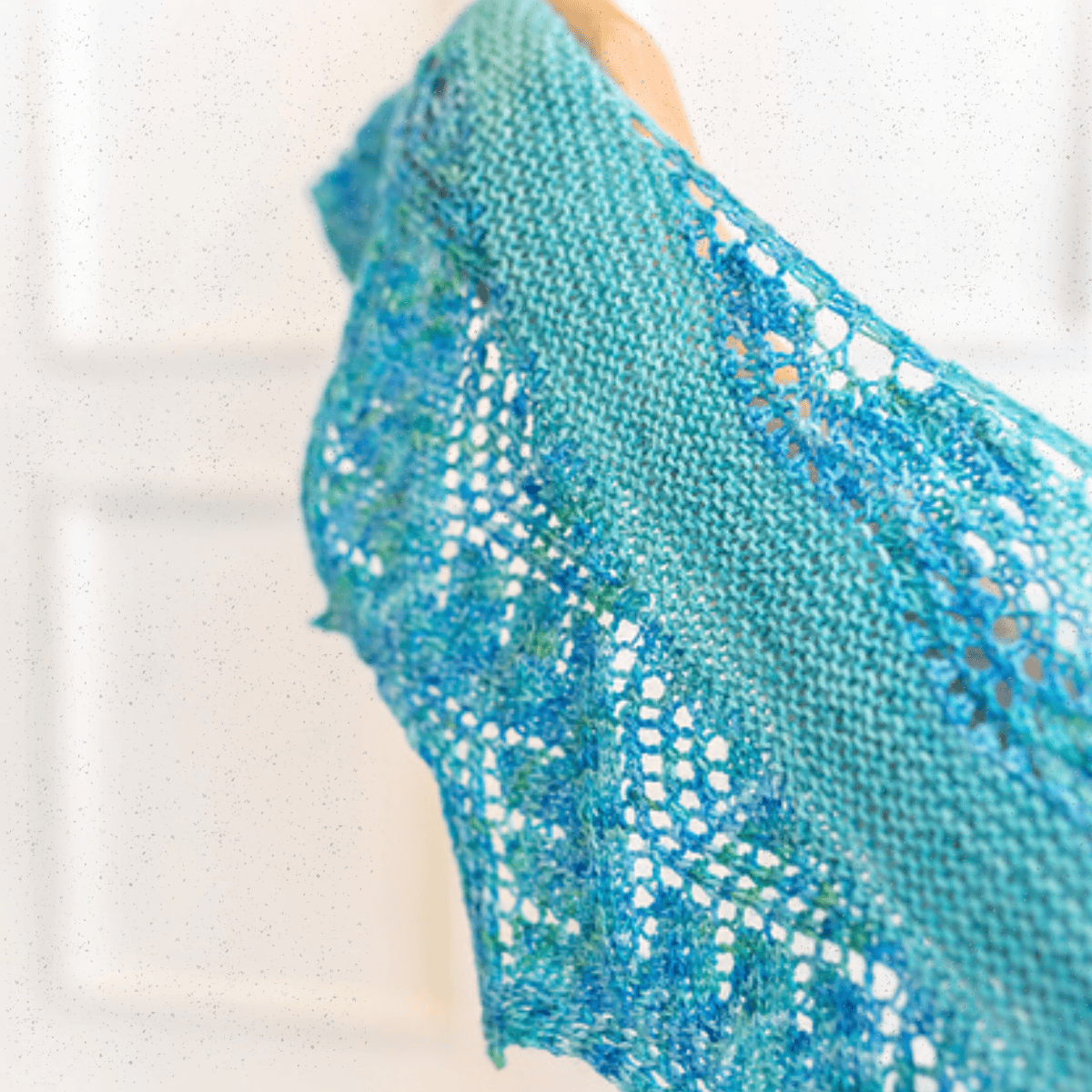 When it comes to self care, millions of people rely on yoga — not only for relaxation, flexibility, and general health, but also for self-reflection and self-actualization. Particularly in Vinyasa yoga, the emphasis is on synchronized breathing, with smooth transitions from one pose to another. Like the rise and fall of the tides, the body and breath work together in constant motion. This fluidity of breath and movement naturally leads to greater flow of energy through the body and mind. Ebb & Flow echoes that energy as it transitions from garter stitch to feather-and-fan lace and back again. The graceful crescent shape is worked top down in two coordinating colors; then, the applied lace border is worked sideways along the lower edge.