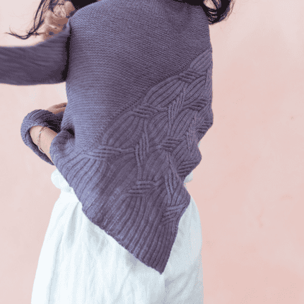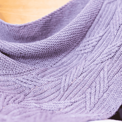 The Contemplation Shawl is an homage to that long and transformative journey. It features an asymmetrical triangular shape with a textured garter stitch body and winding cable borders. This design encourages you to “make each stitch sweet,” resulting in a soft, squishy fabric that rewards slow and deliberate knitting.