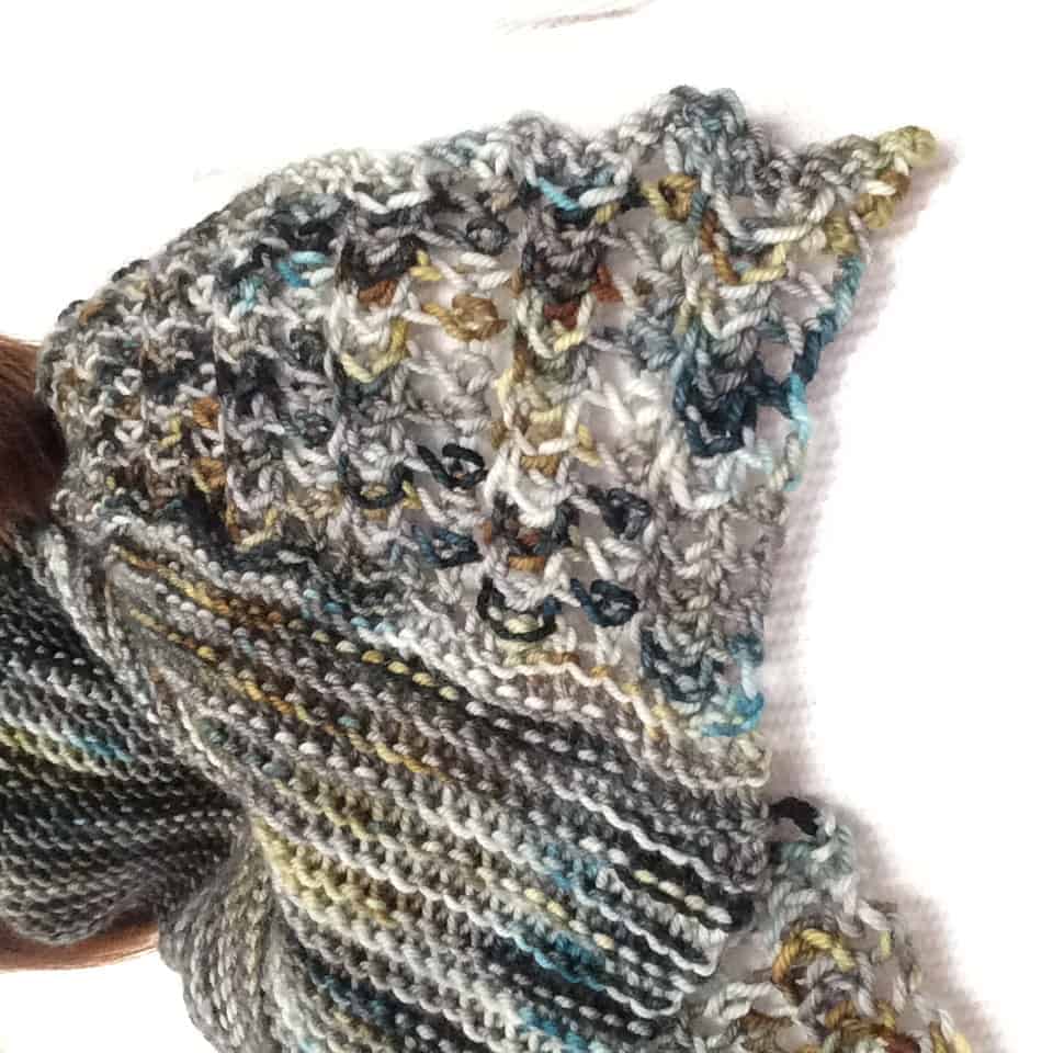 Knit on the bias in light worsted weight yarn (Miss Babs Yowza), Verge is a versatile and reversible shawl pattern. This triangular shawl is worked in garter stitch, making gauge optional. It is finished with a broad openwork lace edge that gives just enough of an elegant touch. Not only is this pattern visually reversible, but it is also incredibly versatile. The size and shape make it wearable as a shawl, a scarf, or a cowl, which is perfect if you live in an area of ever-changing and unpredictable weather like I do. Although the pattern was initially worked up in worsted weight, it can also be knit in DK weight and instructions are included in the pattern for this yarn substitution.