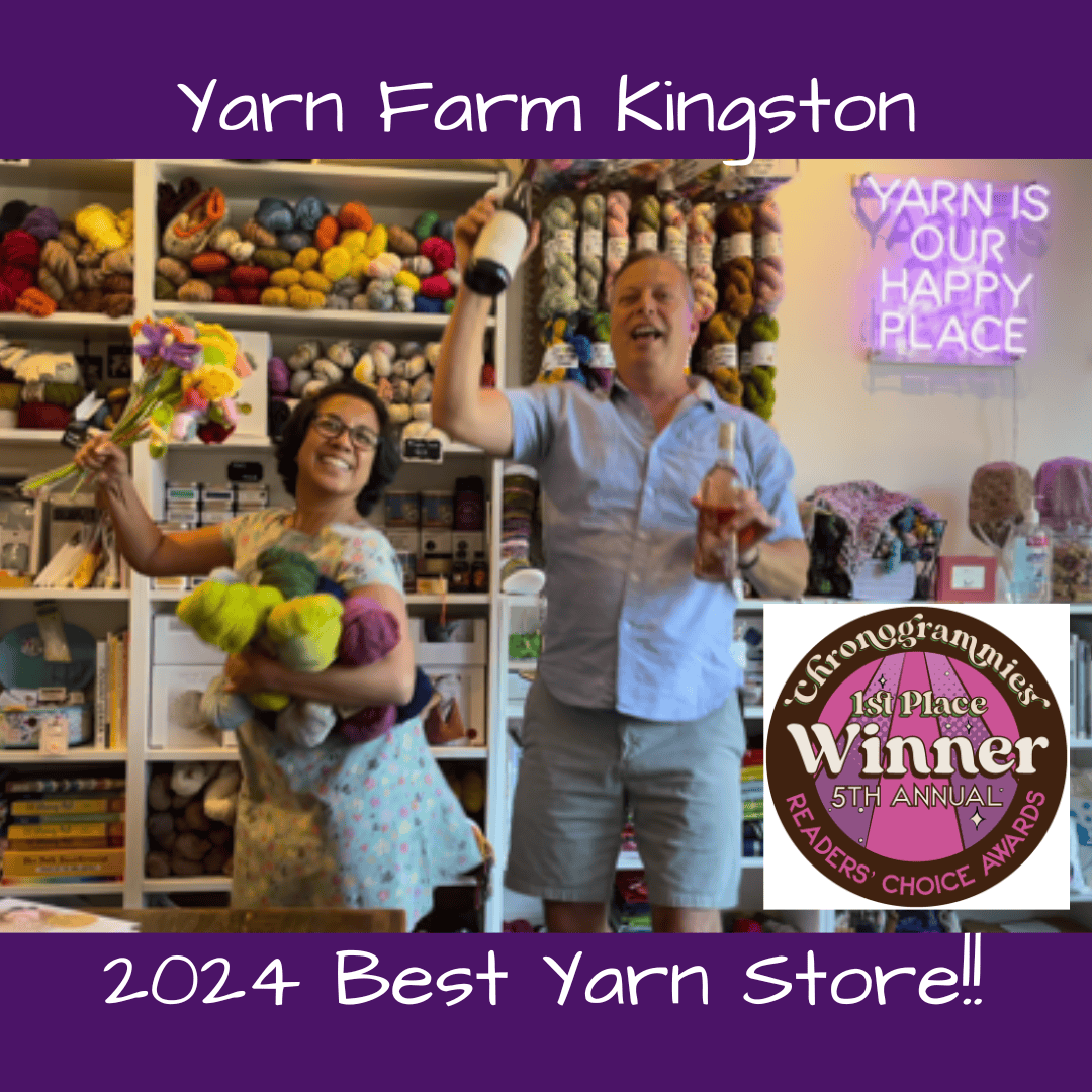 Yarn Farm is coming on two years as Kingston and the Hudson Valley’s local yarn shop whose cozy interior boasts a crafter-friendly wine bar! We are thrilled to announce that for the second year in a row we’ve won a Chronogrammie for Best Yarn Store, a Readers’ Choice Award by Chronogram Magazine readers. At Yarn Farm, yarn is our happy place. Visit and be happy too!