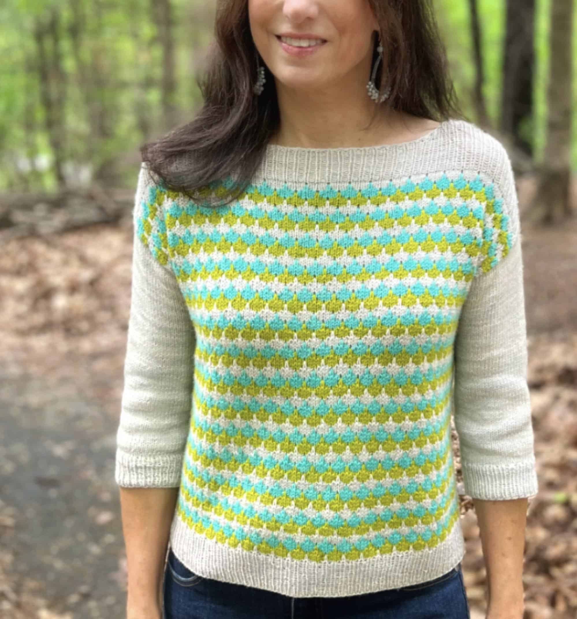 This sweet scarf features a modified dragonfly-lace pattern with zero cabling (a smocked set of stitches replaces the cables) and a neat, i-cord edging.