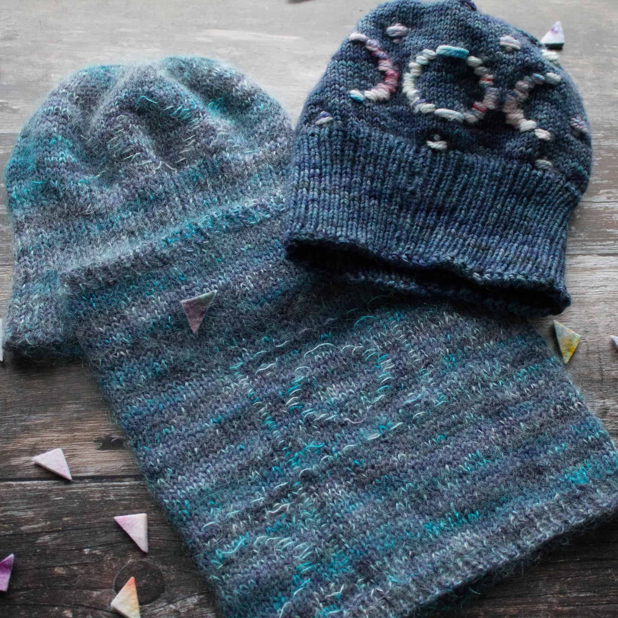 We’ve published a couple of new patterns, which were designed as an ode to the brightness of moon in the night sky and its many phases. It was designed in a Mohair Lace and DK combination, to evoke the etherealness often connected to the moon and its position in spirituality, fantasy and science. Working with yarns held together and separated stitches to produce the pattern gives a lightness to both the hat and cowl. Though as you can see, it’s also very happily knit in worsted using Roosimine to bring out the motifs. You can find them on Payhip and Ravelry:
