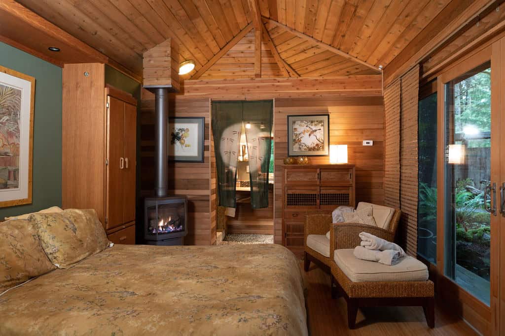 - Accommodations at Wellspring, which features cozy cabins in a peaceful wooded setting
