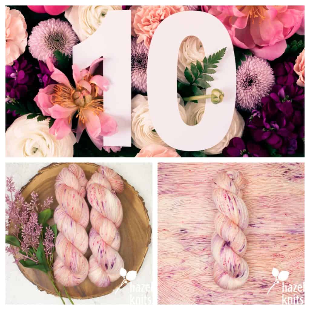 I couldn’t pass this milestone without a yarn-y celebration! For the next 10 months, we are going to mark this occasion with 10 special colorways, each from an indie dyer who has posted to the Indie Untangled online marketplaceand been featured in the newsletter. The colorways will all be inspired by the floral image above.