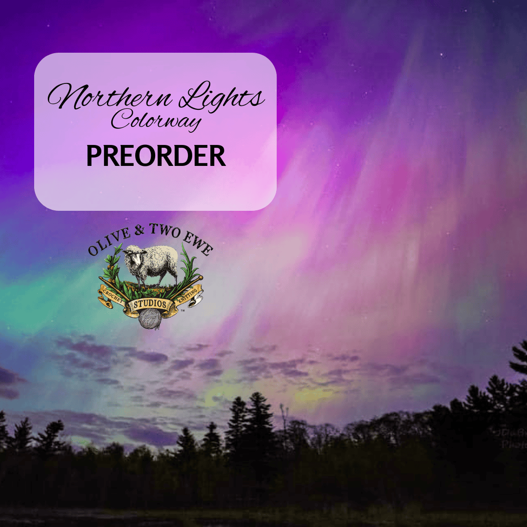 Did you get a glimpse of the Northern Lights recently? Either way, capture the beauty with Olive & Two Ewe’s Northern Lights colorway, which is available to preorder.