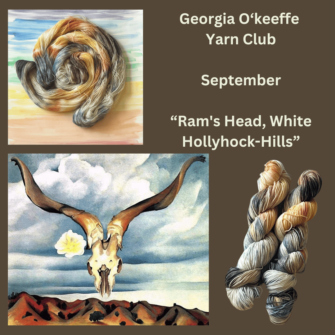 The September installment of The Knitting Artist’s Georgia O’Keeffe yarn club heads to the artist’s Ghost Ranch period and takes inspiration from the famous Ram’s Head, White Hollyhock-hills. The yarn will be available to preorder through this Sunday, September 22.