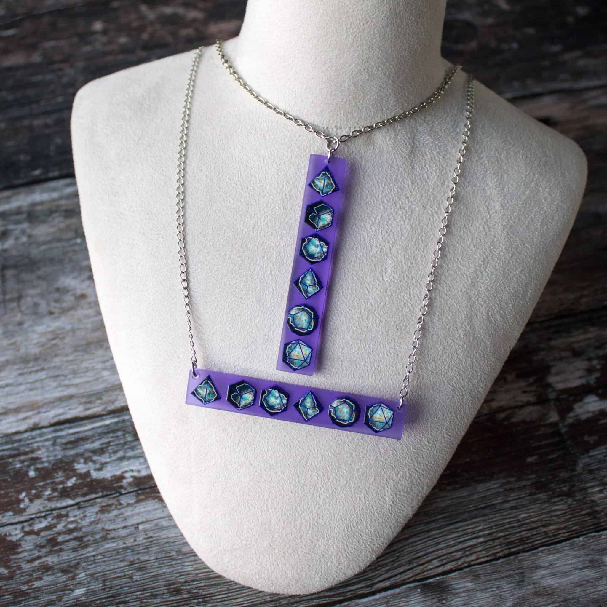 Lola of Third Vault Yarns has tons of yarn-y, non-yarn and geeky gifts in the shop, including Storm Geode jewellry, inspired by geode dice sets with encrusted gems that look like they have lightning storms inside of them.